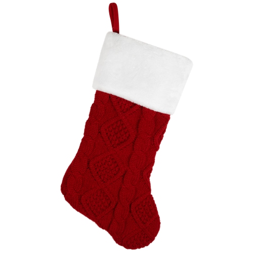Cable Knit with Faux Fur Cuff Christmas Stocking - 20.5" - Red and White