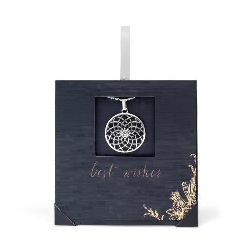 callura Silvertone Lotus Pendant with Classic Austrian Crystal Crystals on Card