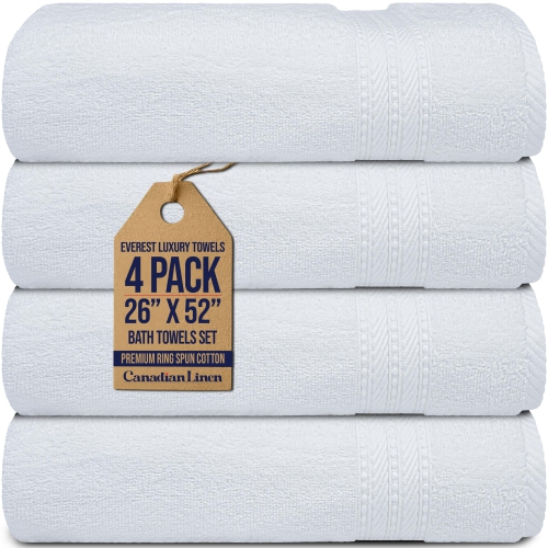 Canadian Linen Everest Luxury Bath Towels, 26"x52", 4 Pack, 500 GSM, 100% Cotton Absorbent Soft Towels, Plush Drying Towels, Gift Towels for home, hotel guest room, salon spa, pool beach resort, White