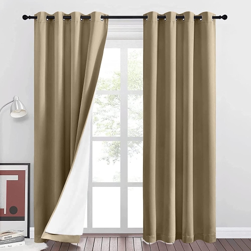 Canadian Linen Blackout Curtains 84 Inches Long 100% Total Blackout Draperies for Bedroom Living Room Thermal Insulated Functional Window Treatment Anti Rust Grommet, 2 Panels, (Beige 52"x84")