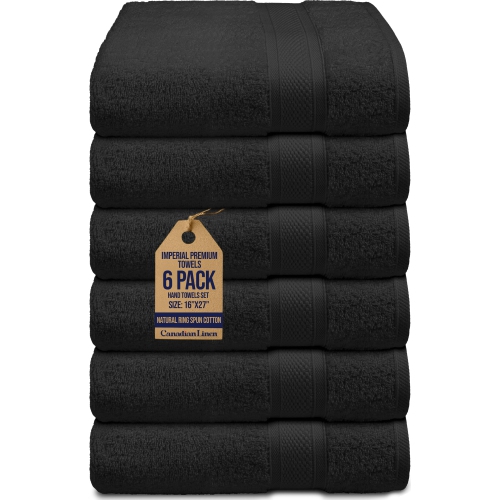 Canadian Linen Imperial Premium Hand Towels Set, 6 Pack, 16"x27", Soft Absorbent Cotton Towels Lightweight Quick Dry Bathroom Towel for Hair Salon Hotel Home Massage Spa Kitchen Gym Pool Sports, Black