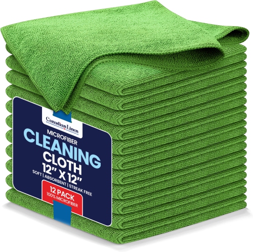 Canadian Linen Microfiber Cleaning Cloth, 12 Pack, 12"x12", Highly Absorbent Soft Reusable Washable Quick Dry Dish Cloth for Kitchen Home Window, Green