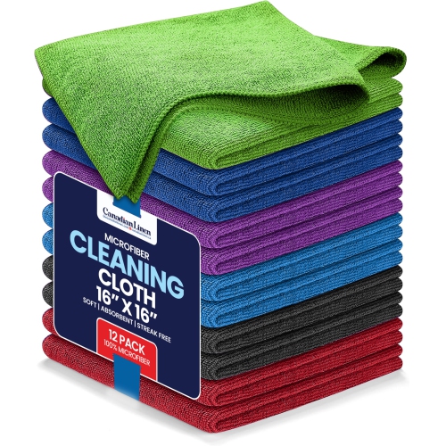 Canadian Linen Microfiber Cleaning Cloth, 12 Pack, 16"x16", Reusable Washable Highly Absorbent Soft Quick Dry Towel for Glasses Kitchen Car, Multi Color