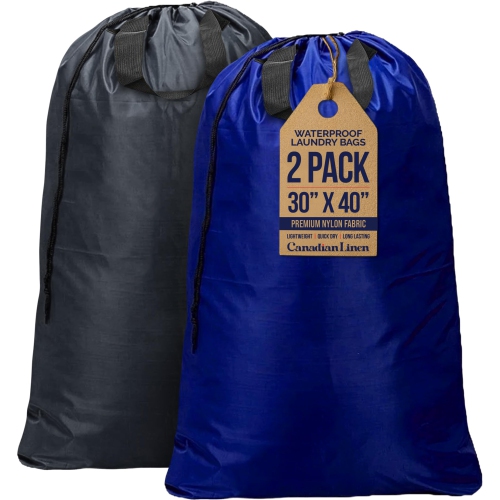 Canadian Linen Nylon Laundry Bags, XL 30"x40", 2 Pack, Drawstring Clothes Organizer Waterproof Fabric Durable Storage Bag Hamper, Grey + Blue