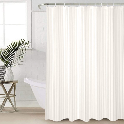 Canadian Linen Deluxe Polyester Shower Curtain with Hooks, 72"x72", Machine Washable Water Mildew Resistant Shower Curtain, C Clip Polyester Bathtub Shower Curtain for Bathroom, Ivory Stripes