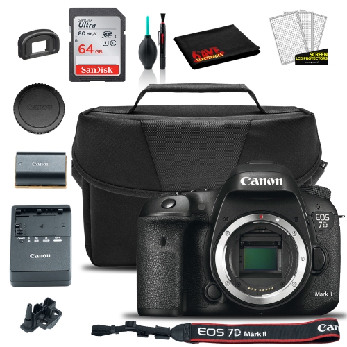 Canon EOS 7D Mark II DSLR Camera (Body Only) (9128B002) + EOS Bag + Sandisk Ultra 64GB Card + Clean and Care Set (International Model)