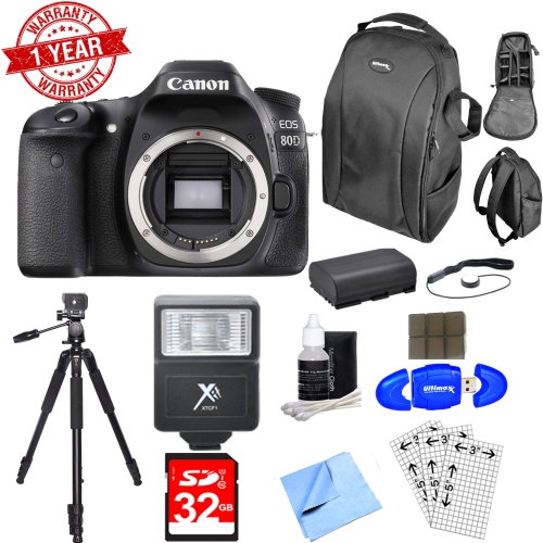 Canon EOS 80D 24.2 MP CMOS Digital SLR Camera (Body)-Includes Case, Tripod, 32GB MC, LP-E6 Battery, Flash, Cleaning Kit & More - US Version w/ Seller Warranty