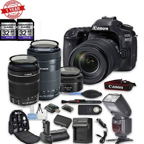 Canon Eos 80D DSLR Camera Bundle w/ EF-S 18-135mm Lens|EF-S 55-250mm f/4-5.6 Is STM Lens|50mm f/1.8 STM Lens Bundle - US Version w/ Seller Warranty