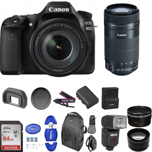 Canon EOS 80D DSLR Camera with 18-135mm USM| 55-250mm STM | 64GB Memory Card And More Kit USA - US Version w/ Seller Warranty
