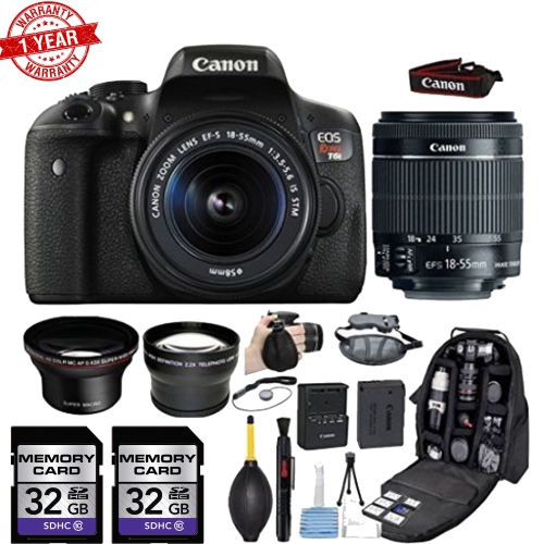 Canon EOS Rebel T6i/T7i DSLR Camera w/18-55mm IS STM Lens|Wide Angle Lens&2.2x Telephoto Lens|32GB MCs|Backpack|Grip Strap|Su - US Version w/ Seller Warranty
