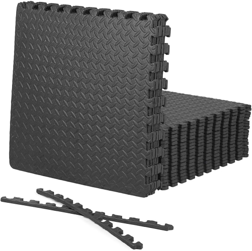 CAPHAUS Interlocking Exercise Foam Mats, Diamond, Tatami, T Pattern 1/2-Inch Thickness Gym Flooring Tiles, Black