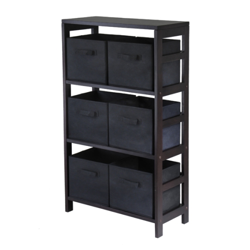 Capri 7-Pc Storage Shelf with 6 Foldable Fabric Baskets, Espresso and Black