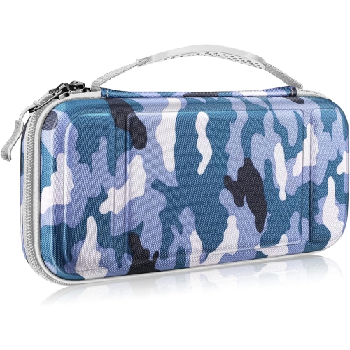 Carrying Case for Switch & OLED, Cute Travel Bag in Pretty Pattern Design of Pink Interior with an Adjustable Shoulder Strap, Camo Blue