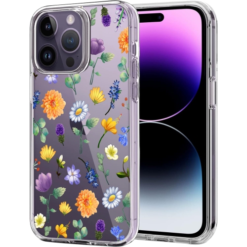 Case Compatible with iPhone 14 Pro Case Clear with Design Embossed Floral Pattern Soft TPU Bumper Slim Protective