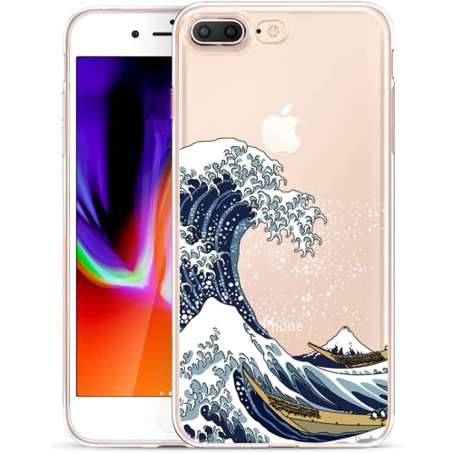 Case Compatible with iPhone 8 Plus iPhone 7 Plus Case Clear with Design Embossed Pattern TPU Soft BumCooper Shock Absorption Slim Protective 5.5 Inch (Great Wave)
