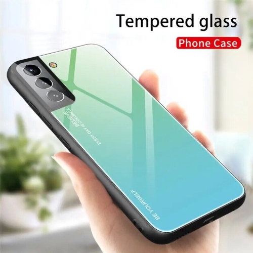 Case Cover for Samsung Galaxy S22 Tempered Glass Gradient Color Pattern + TPU Frame Hybrid Slim