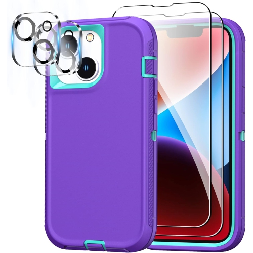 Case for iPhone 14 Case with 2 Screen Protector + 2 Camera Lens Protector, Full Body Heavy Duty Rugged Military Grade