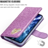 Case for iPhone 14 Pro Max, Glitter PU Leather TPU Bumper Card Holder [Wrist Strap] [Magnetic Closure] Wallet