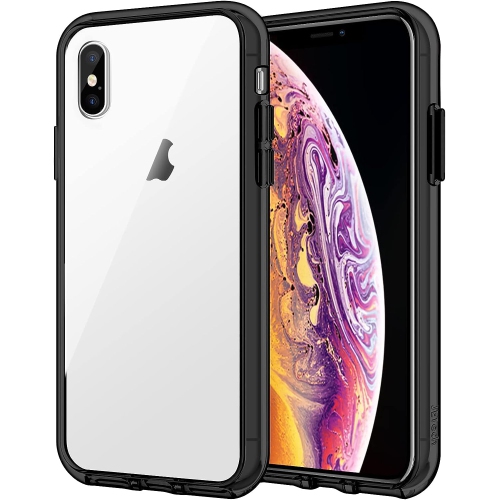 Case for iPhone Xs and iPhone X, Shock-Absorption Bumper Cover, Anti-Scratch Clear Back, Black