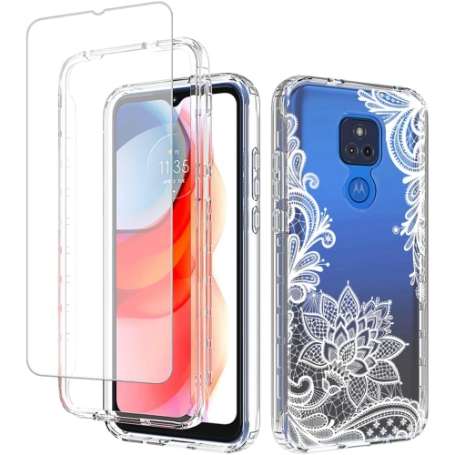 Case for Moto G Play 2021 Case, XT2093DL with Tempered Glass Screen Protector, Floral Design Shockproof Bumper