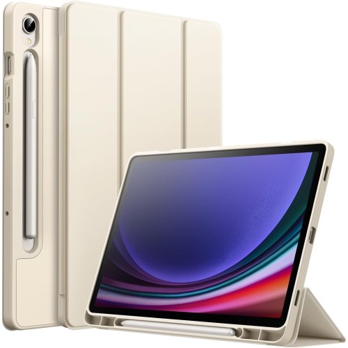 Case for Samsung Galaxy Tab S9 11 Inch with S Pen Holder, Soft TPU Tri-Fold Stand Protective Tablet Cover, Support S Pen Charging, Auto Wake/Sleep (Beige) Cell Phone Batteries