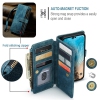 CaseMe Wallet Case Premium Handmade PU Leather Phone Case Card Slots Magnetic Closure Zipper Pocket Kickstand Flip Case with Hand Strap for iPhone 14 Pro (Cyan) - Free Shipping