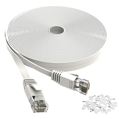 Cat 6 Ethernet Cable 25 ft, Outdoor&Indoor 10Gbps Support Cat8 Cat7 Network, Flat Internet RJ45 LAN Patch Cords, Solid High Speed Computer Wire with Clips for Router, Modem, PS4/5, Xbox, Gaming, White