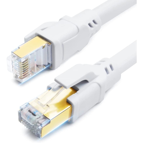 CAT8 Ethernet Cable, 15ft High Speed 40Gbps 2000MHz 26AWG Gigabit Internet Network LAN SFTP CAT8 Patch Cord with Gold Plated RJ45 Connector for Gaming, Router, Modem, Xbox, PCs, Laptops (15ft, White)