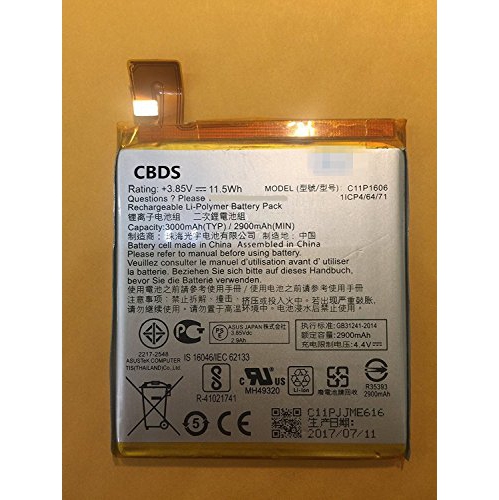 (CBDS) 2900mAh, 11.5 Wh Replacement Battery - Compatible with Asus Zenfone 3 Laser ZC551KL C11P1606 in Non-Retail Packaging.