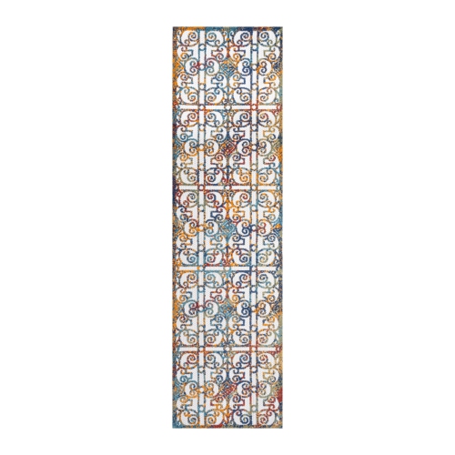 Inspired by scrolling Mediterranean wrought iron, this indoor-outdoor rug will cheer up a kitchen, living room, bedroom or dining room. The multicolored design is an easy maintenance solution for homes with kids and pets.