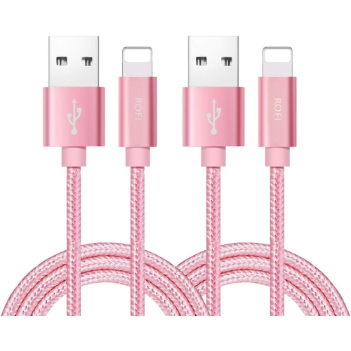 Charger Cable Compatible for Phone, [2Pack] Nylon Braided Phone Cable Fast Charging USB Cord Replacement for Phone X 8 8 plus 7 7 Plus 6s 6s Plus 6 6 Plus 5 5S SE iPad Air Mini and iPod (2 Feet, Rose Gold)