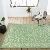 With a filigree design reminiscent of antique iron gates, our Boho-chic rug adds eclectic style to an outdoor porch or patio. Tones of cream mingled with a soft green pattern give this rug a hand-woven, vintage vibe.