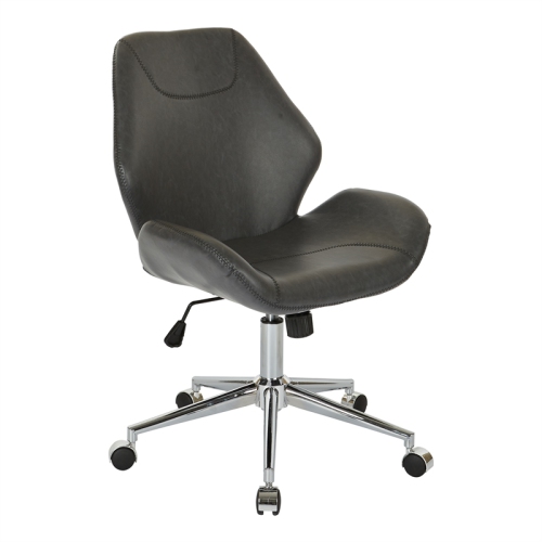 Chatsworth Office Chair in Black Faux Leather with Chrome BaseCreate the modern home office of your dreams with this faux leather office chair. Sink back into the comfort of the unique molded bucket seat while you work. An adjustable-height chrome base allows for a personalized seating experience. Upgrade your office seating with the Avenue Six Chatsworth Office Chair.Features : Finish: Chrome39.5" H x 23" W x 24.75" DMateri...