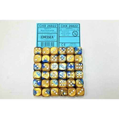 Chessex Dice 12mm D6 (36 Dice) Gemini Blue - Gold / White CHX26822