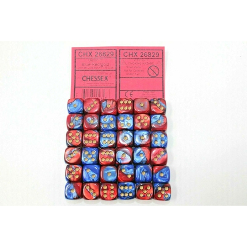Chessex Dice 12mm D6 (36 Dice) Gemini Blue - Red / Gold CHX26829