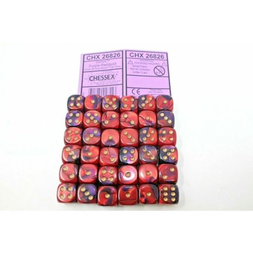 Chessex Dice 12mm D6 (36 Dice) Genini Purple - Red / Gold CHX26826