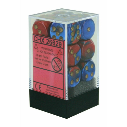 Chessex Dice Gemini: 12D6 Blue-Red/Gold - CHX26629 New