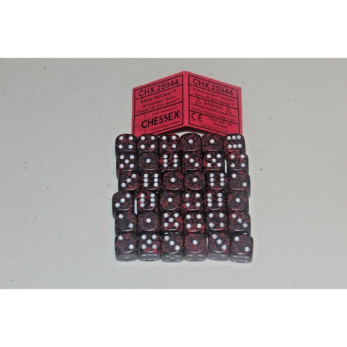 Chessex Silver Volcano 36 Speckled 12mm Pipped Dice CHX 25944