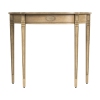 The Pembroke-inspired console features four elegantly tapered legs topped with sweeping convex and concave curves. Crafted from hardwood solids with a distressed Antique Beige finish.Features : Finish: Antique BeigeMaterials: Wood solids, MDF, VeneersVeneer Inlay on apron frontBeautifully carved leg detailingDemilune shape with unfinished back to be placed against a wallSpecifications : /b...