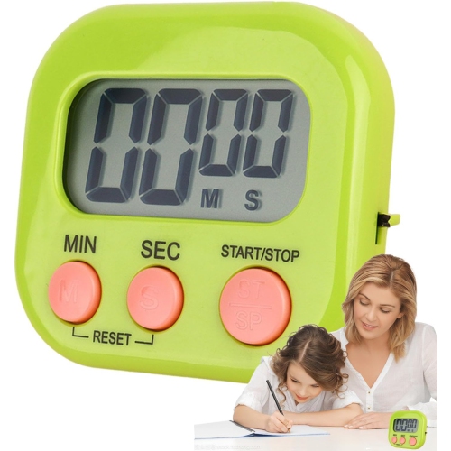 Children's timer, kitchen digital timer, magnetic back, bell, cooking rack - green