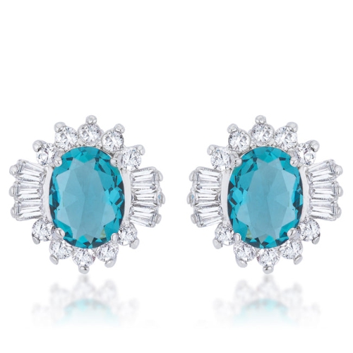 Chrisalee 3.3ct Aqua CZ Rhodium Classic Stud Earrings