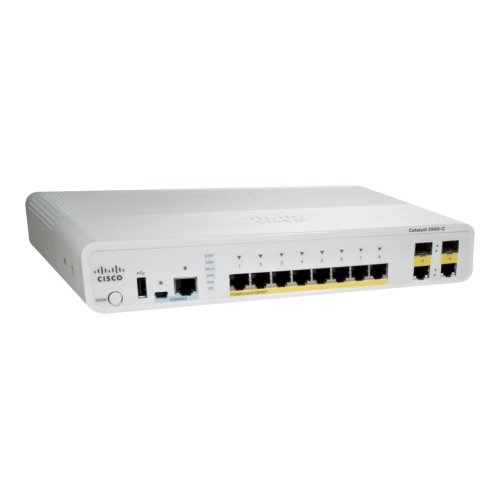 Cisco Catalyst Compact 2960C-8PC-L - Switch - managed - 8 x 10/100 (PoE) + 2 x combo Gigabit SFP - desktop, rack-mountable, wall-mountable - PoE (WS-C2960C-8PC-L)