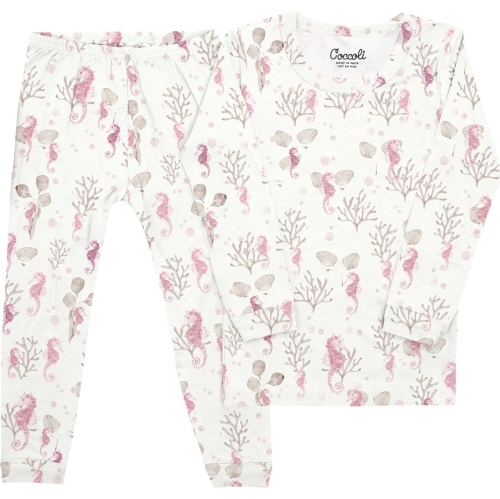 Coccoli Cotton-Modal Long Sleeve Pyjamas - Seahorses on Cream (4 Years, 38-44 lbs)