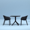Sky indoor-outdoor bistro set with two dining chairs and one square table. Contemporary design. Made from commercial grade resin with gas injection molded legs. Extremely durable for outdoor temperatures. Easy cleaning. Perfect for heavy use indoor-outdoor areas.