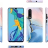 Compatible Huawei P30 Case Gold Glitter Sparkle Blue Marble Design Clear Bumper Glossy TPU Soft Rubber Silicone