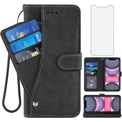 Compatible with iPhone 11 Pro 5.8 Wallet Case and Tempered Glass Screen Protector Flip Cover Leather Purse Credit Card
