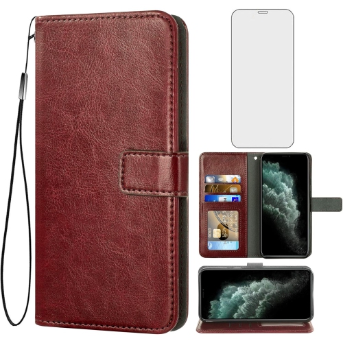 Compatible with iPhone 11 Pro 5.8 Wallet Case Tempered Glass Screen Protector and Flip Cover Card Holder Cell