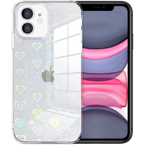 Compatible with iPhone 11 Pro Max Case, Love Clear Holographic Heart Phone Case for Women Kids, Aesthetic Glitter