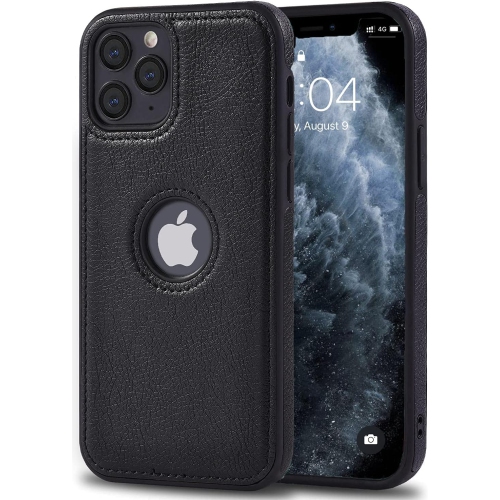 Compatible with iPhone 11 Pro Max Case Premium Leather TPU Hybrid Case Cover (Black)