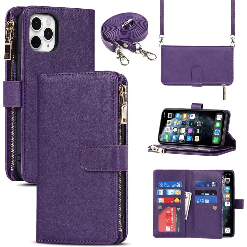 Compatible with iPhone 11 Pro Wallet Case,[9 Card Slots] Removable Adjustable Crossbody Necklace Lanyard